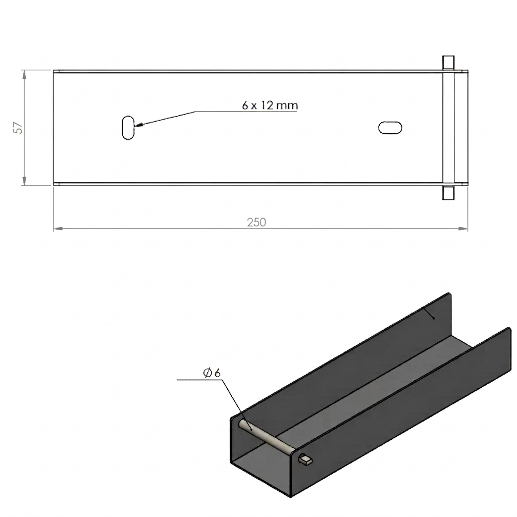 - Montážní otvory: 2 ks — fazolky 6 × 12 mm