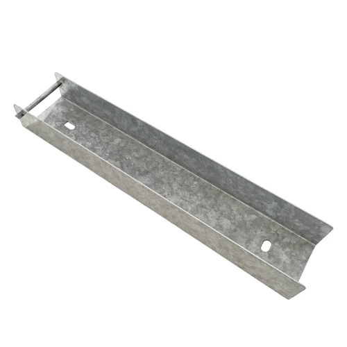 C-profil spojka pro plotovou podezdívku stříbrný galvanický pozink – pohled zespoda ukazující C-profil a blokovací tyč