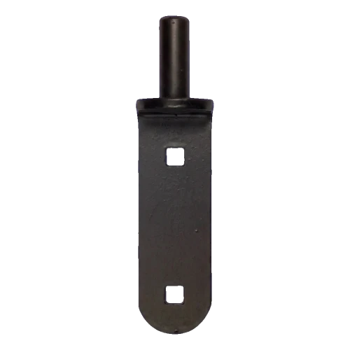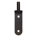 Čep je vyroben z černé oceli, což zajišťuje vysokou mechanickou odolnost a estetický vzhled harmonizující s ploty a branami v tmavých barevných provedení. Úhlový profil umožňuje montáž naplocho ke sloupku — čep vystupuje kolmo a vytváří osu otáčení pro pásový pant. Dva čtvercové montážní otvory umožňují rychlé a spolehlivé přišroubování elementu, což výrazně zrychluje instalační práce na stavbě.