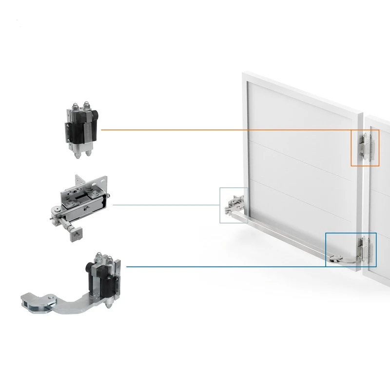Systém Albatros Piccolo spolupracuje s pohony pro křídlové brány značky Comunello. Pro komplexní instalaci jsou k dispozici také doplňkové příslušenství: systém šablon otvorů se šrouby a matkami a spojovací profil převodového ramena se sloupkovým pantem, které výrazně zrychlují proces montáže.