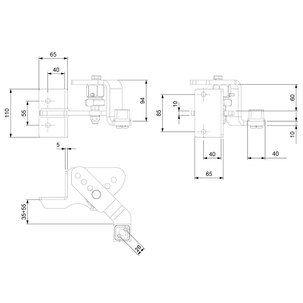 - Svislá vzdálenost mezi rameny (dolní závěs): 60 mm