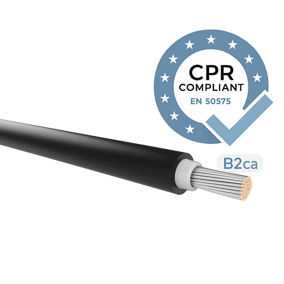 Použití: kabel je určen pro propojení ve fotovoltaických instalacích – mezi PV panely a na úseku panely–střídač. Osvědčuje se jak v malých střešních instalacích, tak ve velkých pozemních farmách. Třída B2ca umožňuje jeho použití i uvnitř budov, včetně únikových cest, kde je vyžadováno omezení šíření ohně.
