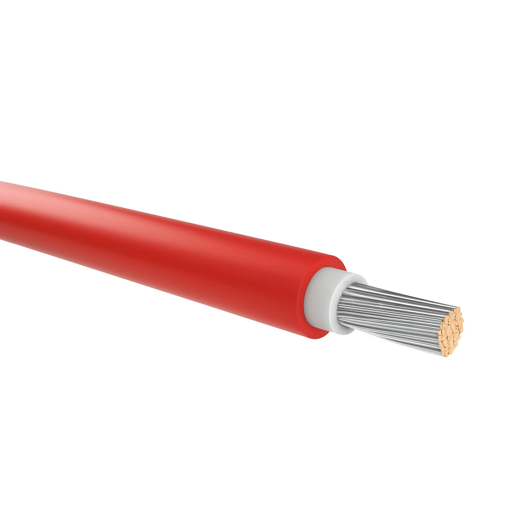 Fotovoltaický kabel H1Z2Z2-K 1x10 mm2 v červené barvě je spolehlivým prvkem každé FV instalace. Díky pocínované měděné žíle o průřezu 10 mm2 zajišťuje nízké přenosové ztráty i na dlouhých kabelových trasách – od stringů modulů až k měniči.