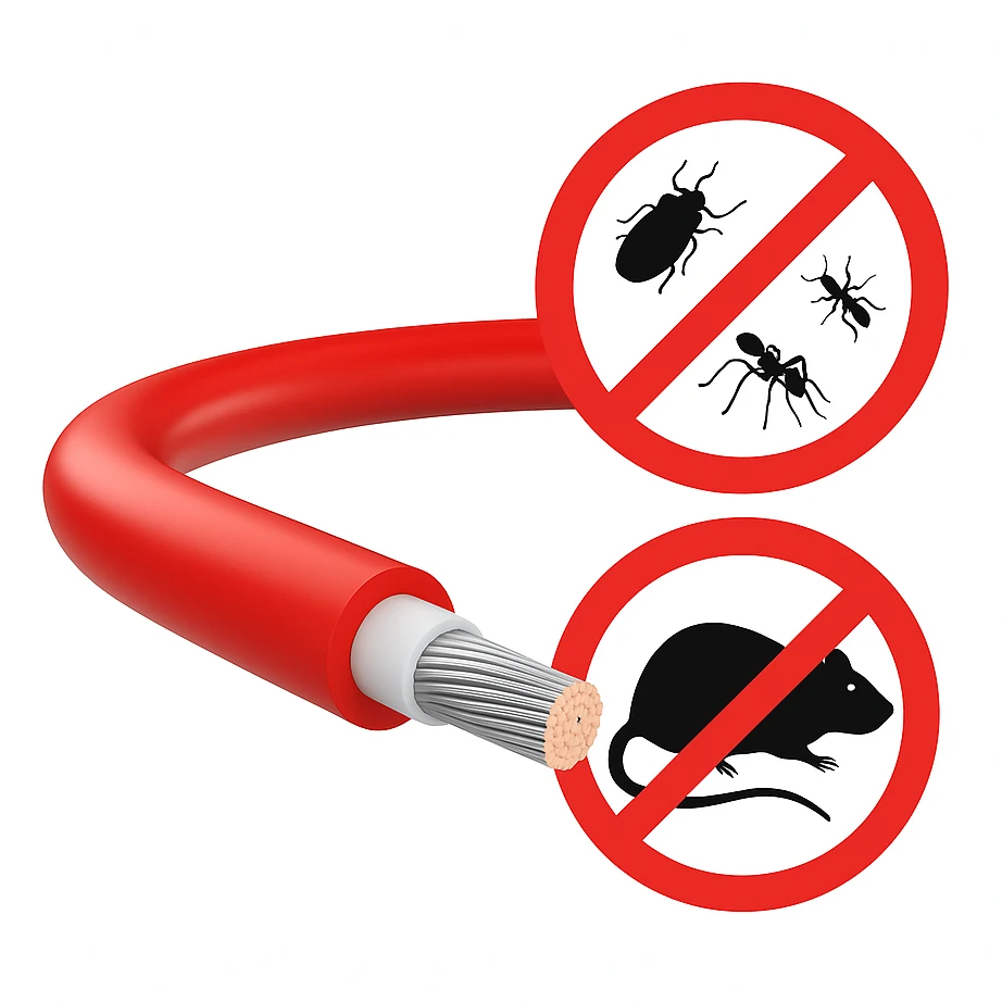 Proč má ochrana AR význam? Poškození kabelů hlodavci je jednou z nejčastějších příčin poruch fotovoltaických instalací, zejména ve venkovských oblastech a v blízkosti hospodářských budov. Přísada proti hlodavcům ve vnějším plášti účinně odpuzuje škůdce a eliminuje riziko nákladných prostojů a oprav.