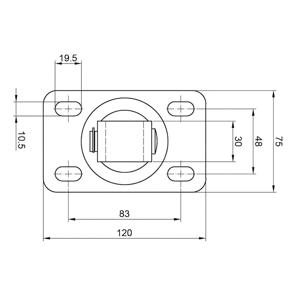 - Rozteč montážních otvorů: 83 × 48 mm (mezi osami)