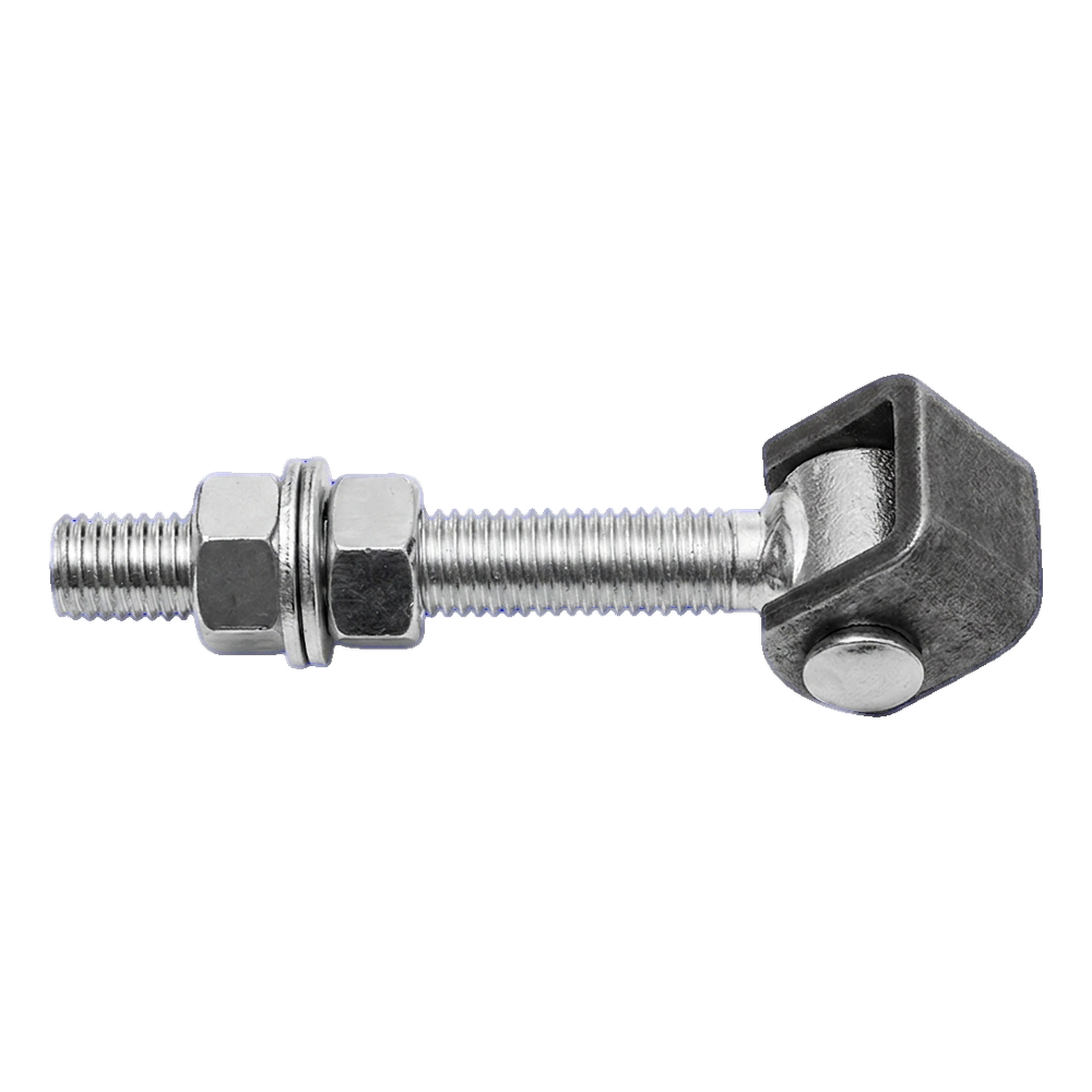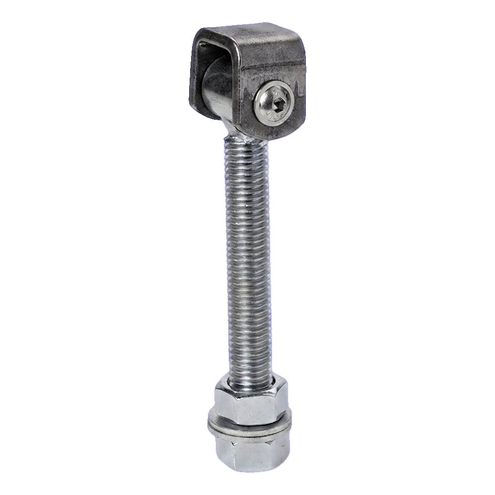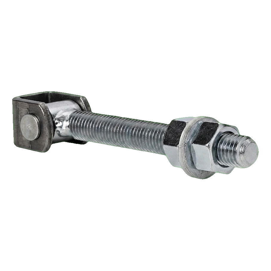 Nastavitelný dlouhý závěs M18 je odolný kování určený pro montáž křídlových bran. Díky šroubu se závitem M18 a nastavovací matice umožňuje precizní korekci nastavení křídla brány — jak těsně po montáži, tak během provozu, např. když se konstrukce vychýlí pod vlastní hmotností nebo se deformuje vlivem tepelných změn v zimním období.