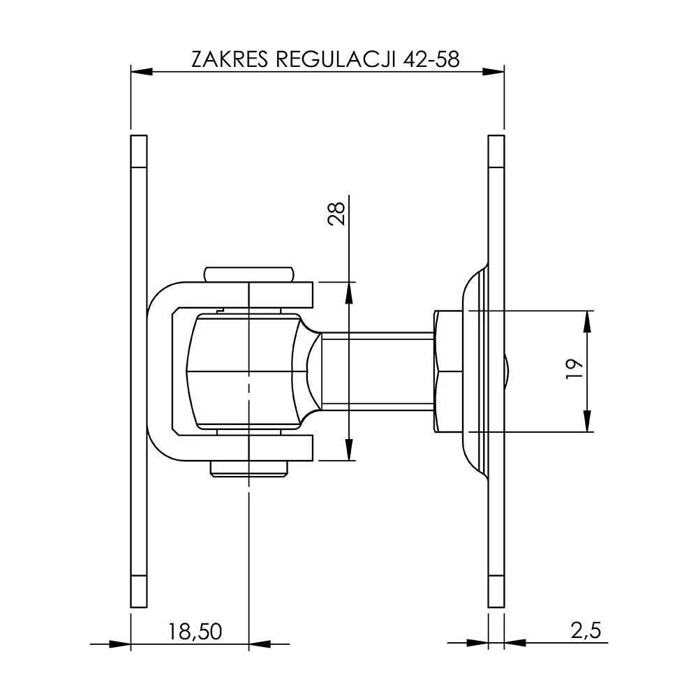 - Nastavení po montáži — rozsah 42–58 mm umožňuje korekci nastavení křídla bez demontáže