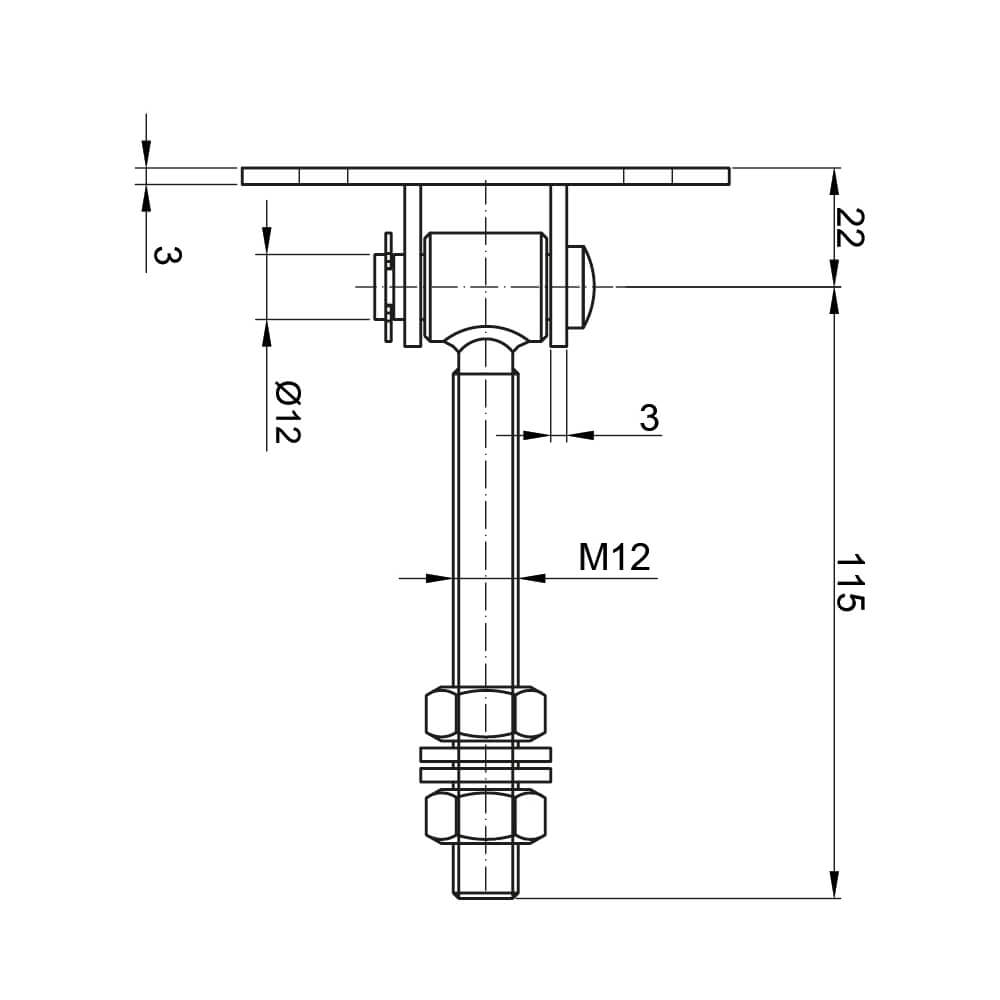 Ocelový nastavitelný závěs M12 určený k montáži křídlových bran a branek. Závitový čep o délce 115 mm umožňuje přesné nastavení polohy křídla jak během montáže, tak i při pozdějším provozu — což výrazně zkracuje čas seřizování brány na stavbě.