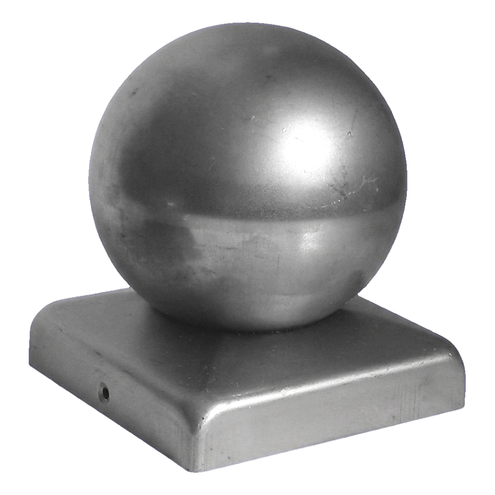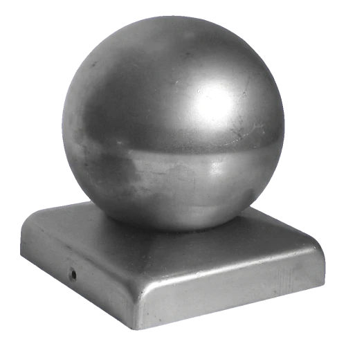 Ocelová plotová stříška s koulí 60×60 mm / ø 50 mm – surová