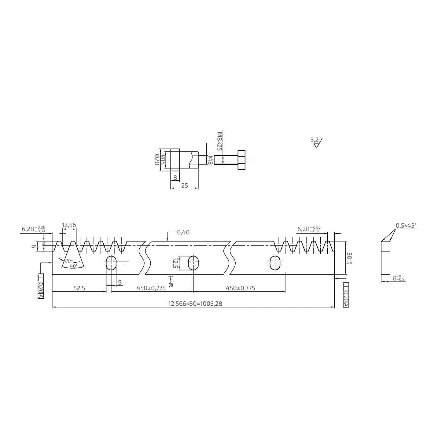 Ocelový ozubený hřeben pro samonosné posuvné brány L1000X8