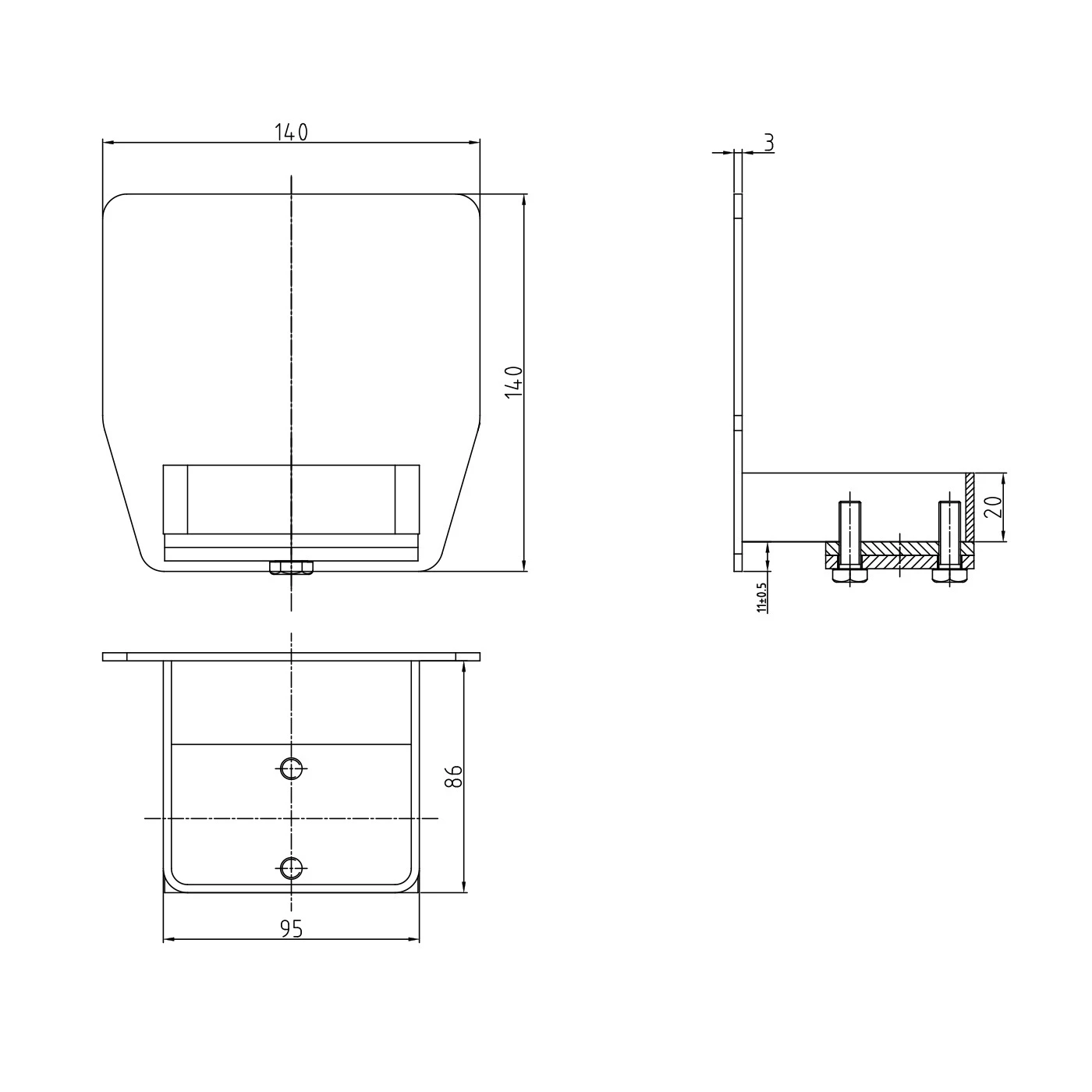 - Výška čelního plechu: 140 mm