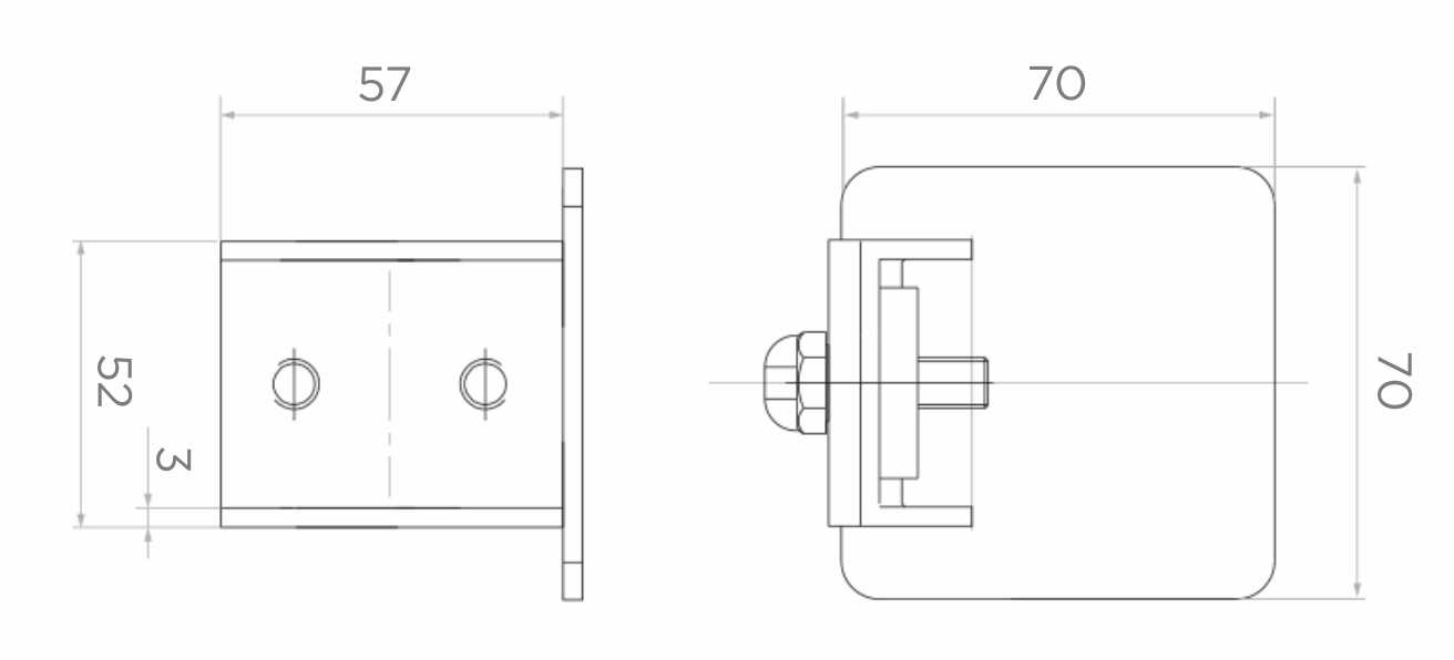 Prvek se zasunuje do otvoru profilu jízdní kolejnice do hloubky 57 mm a připevňuje se pomocí přiložených šroubů. Konstrukce zajišťuje spolehlivé, stabilní spojení bez nutnosti svařování. Zakončení se používá na obou koncích jízdní kolejnice samonošné posuvné brány — chrání profil a dodává instalaci profesionální, dokončený vzhled.
