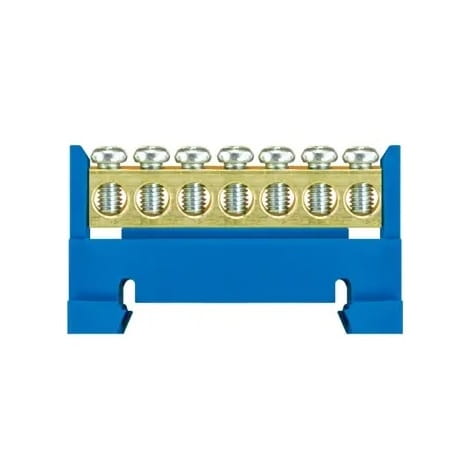 Nulová svorkovnice pro lištu - 7 modrá - nízká základna je svorkovnice namontovaná na liště TH-35 a je určena pro použití v elektrických rozváděčích.