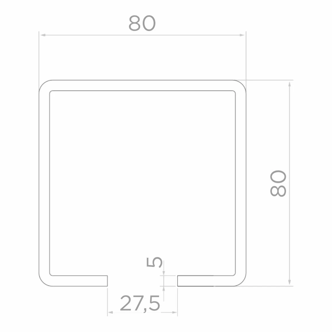 Ocelová U-lišta 80×80 mm pro samonosné posuvné brány – 6000 mm