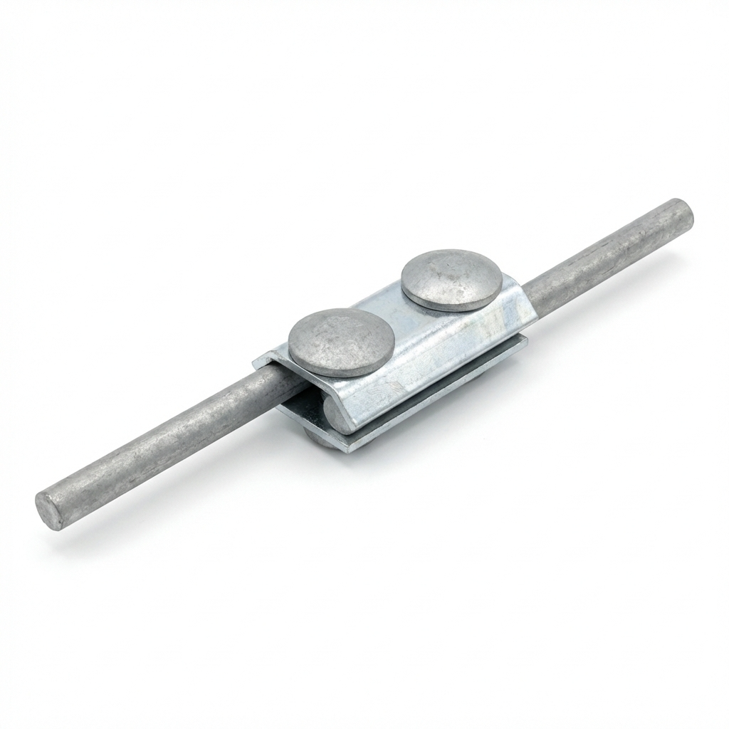 Průchozí spojka 2-otvorová jednoduchá slouží k vytváření trvalých křížových spojení kulatých vodičů v hromosvodních instalacích. Je to spolehlivý prvek systému ochrany před bleskem, ideální pro použití jak na střechách, tak v pozemních instalacích.