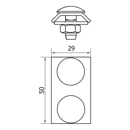 Rozměry spojky jsou 29 × 50 mm, což zajišťuje kompaktní konstrukci při zachování plné funkčnosti. Díky malým rozměrům se spojka výborně hodí do míst s omezeným montážním prostorem.