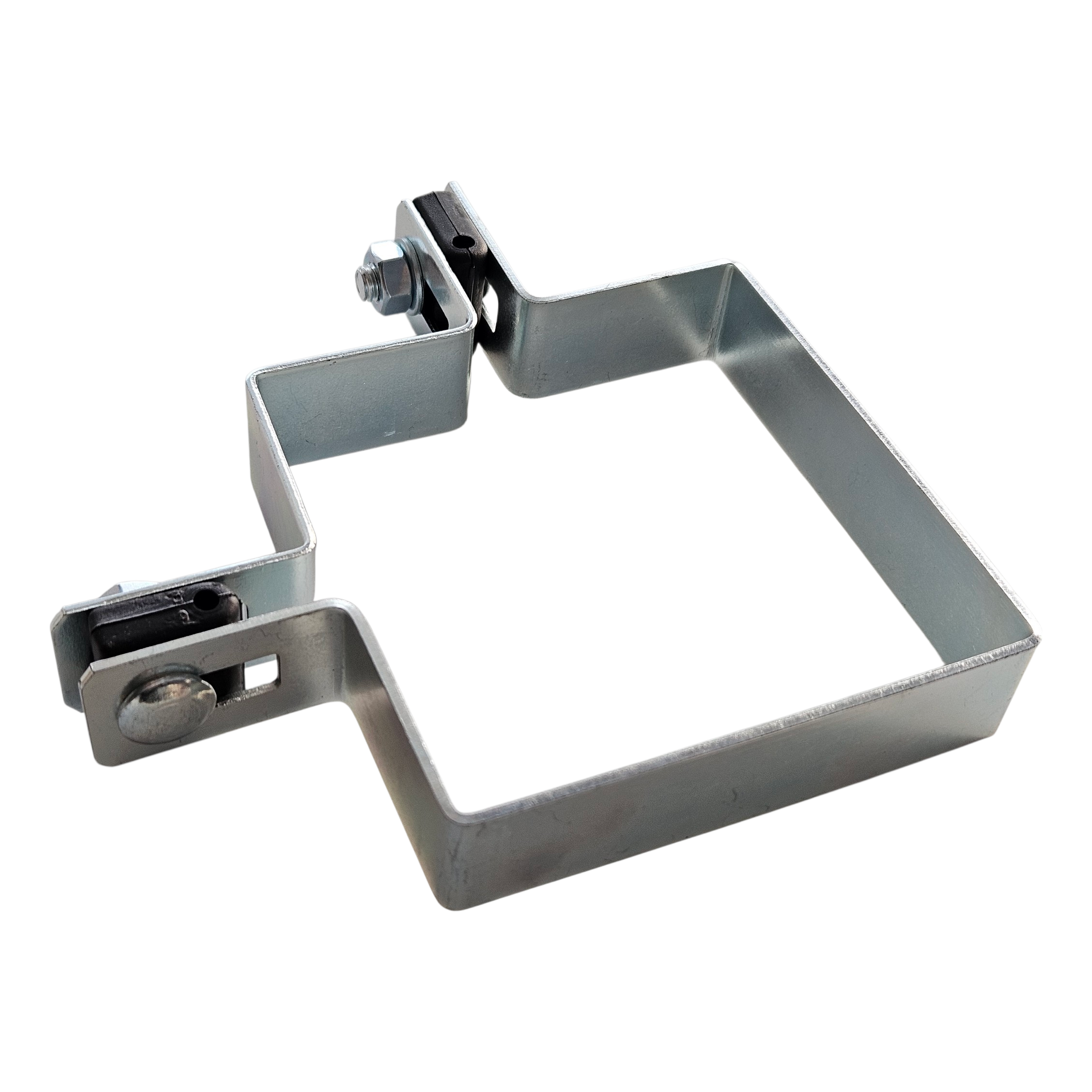 Objímka je perfektně přizpůsobena průřezu sloupku 100×100 mm, což zaručuje stabilní a spolehlivé spojení plotové konstrukce. Montážní otvory ve tvaru fazole umožňují regulaci polohy panelu vůči sloupku — usnadňují vyrovnání plotu i na nerovném terénu.
