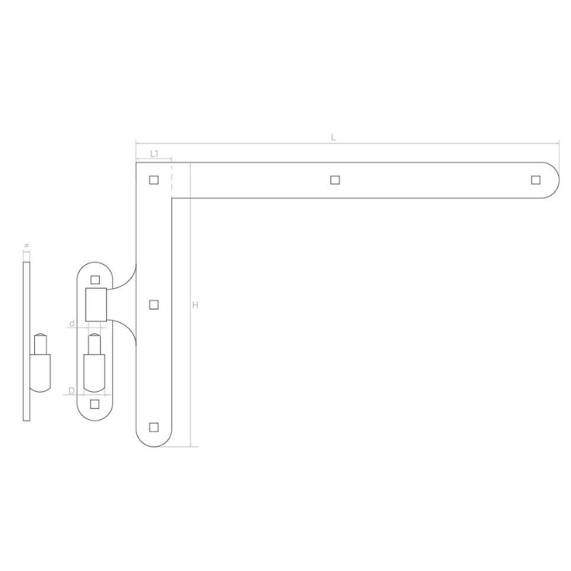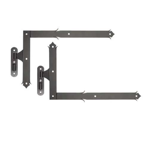 Rohový ozdobný pant s čepem H400 x L650 – komplet na jedno křídlo, černý