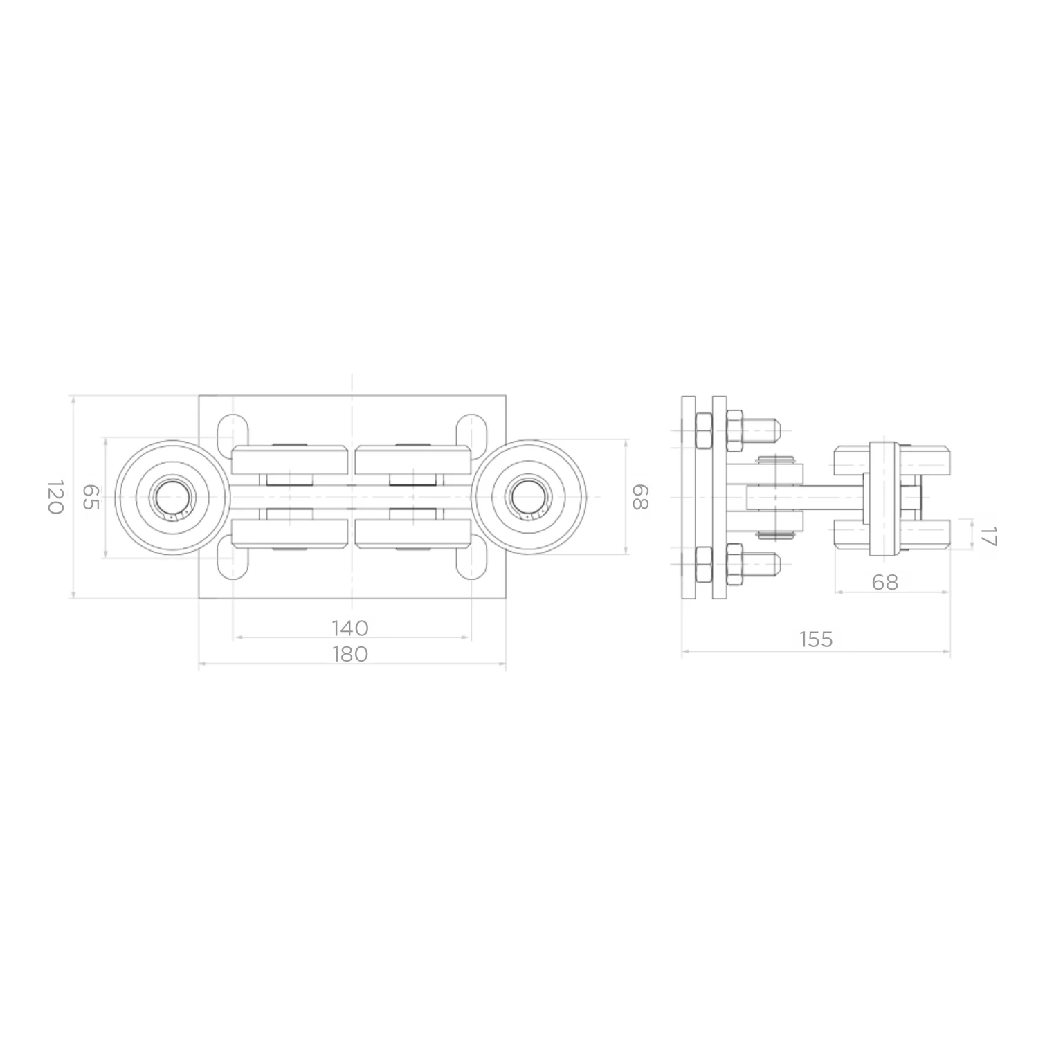 - Šířka: 120 mm (rozteč kladek 65 mm)