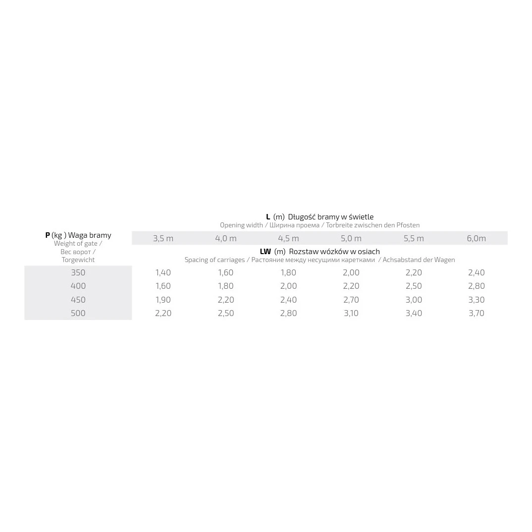 Pojezdový vozík je vybaven kyvným spojením se základnou pomocí čepu, díky čemuž se automaticky přizpůsobuje kolejnici posuvné brány. Nastavení výšky umožňuje přesné seřízení brány během montáže.