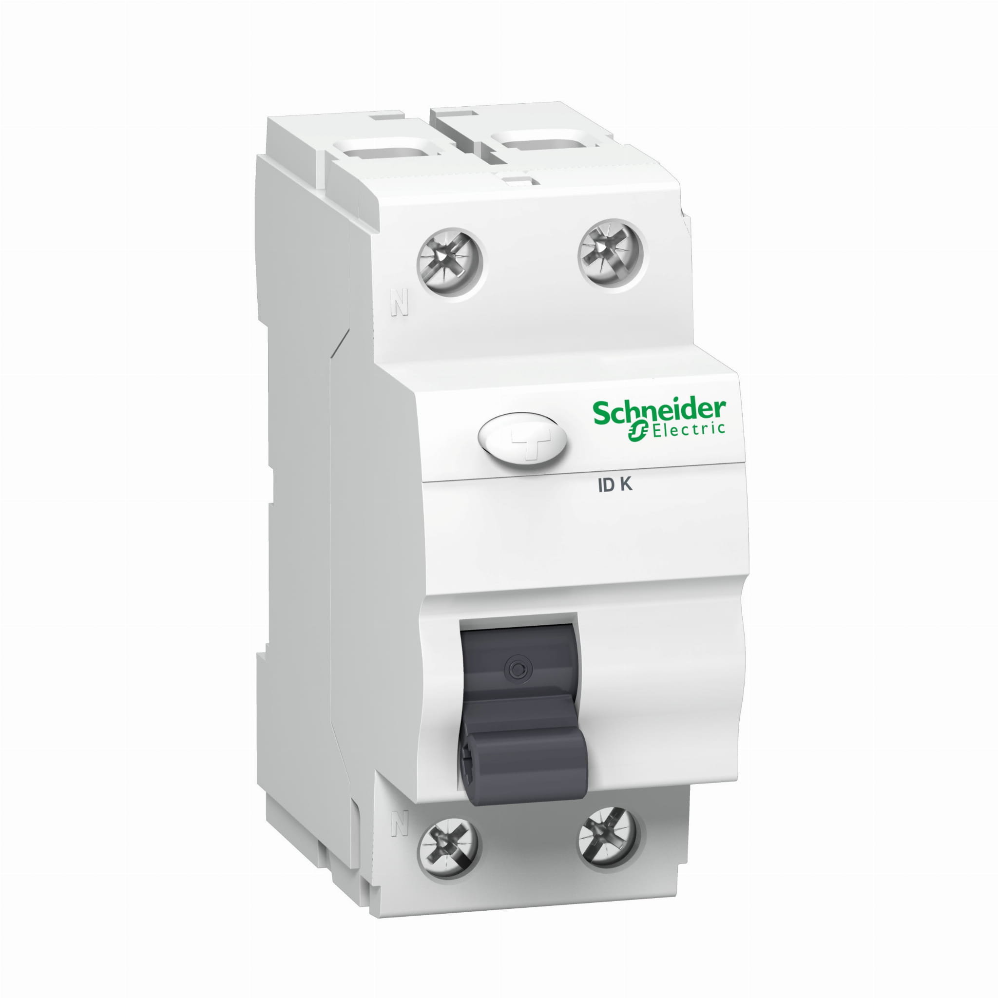 Je vybaven dvojitými krimpovanými svorkami na spodní straně (lišta + kabel), které zaručují bezpečné spojení. Kolejnice N je umístěna na levé straně pro snadné šablonování s nadproudovými jističi. Přístroj má také testovací tlačítko "T" pro kontrolu správné funkce.