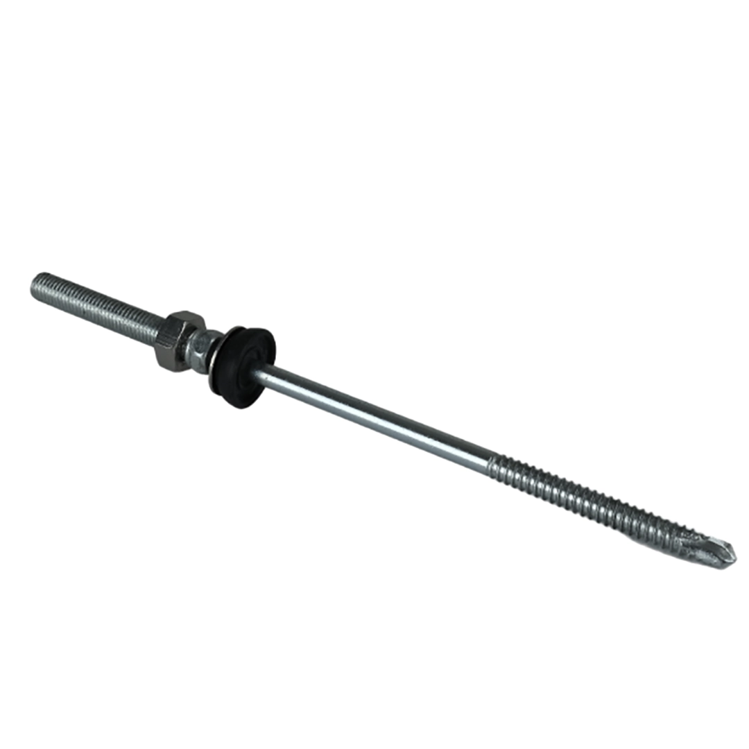 Šroub s dvojitým závitem je jedním z mnoha prvků potřebných pro instalaci fotovoltaických systémů. Výrobek je určen k montáži na střešní panely, plechy, šindele nebo asfaltový papír. Charakteristickým rysem prvku jsou dva různé závity na jeho dvou koncích. Konec s kovovým závitem se šroubuje přímo do kovové střešní konstrukce, zatímco opačná strana slouží jako upevňovací bod pro adaptéry s přírubovými maticemi.