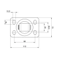 Stavitelný pantový závěs M20 se základnou 110×75 mm – typ fazole