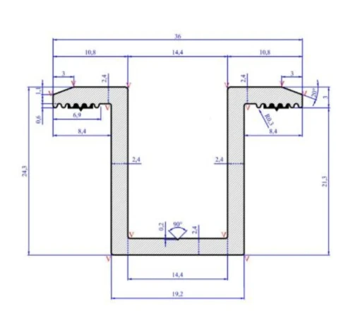 - Hliníkové profily přizpůsobené pro šestihranné šrouby