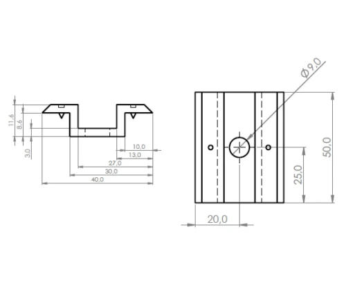 - Průměr montážního otvoru: 9 mm (M8)