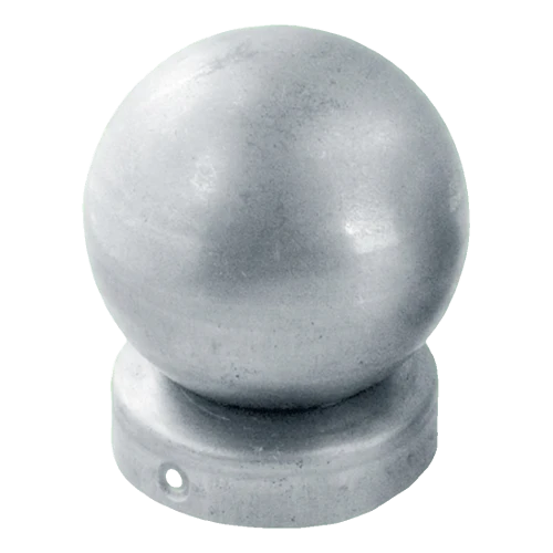 Kulatý střešní kryt na plot s ozdobnou koulí určený pro dokončovací práce na sloupcích o průměru fi 80 mm. Ocelová konstrukce pokrytá pozinkovanou vrstvou zajišťuje účinnou protikorozní ochranu, díky čemuž si prvek zachovává trvanlivost a estetický vzhled po mnoho let — i v náročných povětrnostních podmínkách.