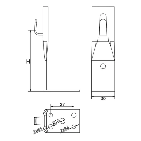 Úhlový držák – svorka H8 cm z galvanického zinku je spolehlivý prvek systému ochrany před bleskem, určený k vedení hromosvodu na střechách a stěnách. Díky použití oceli pozinkované elektroliticky poskytuje produkt nejvyšší třídu antikorozní ochrany — i v náročných povětrnostních podmínkách.