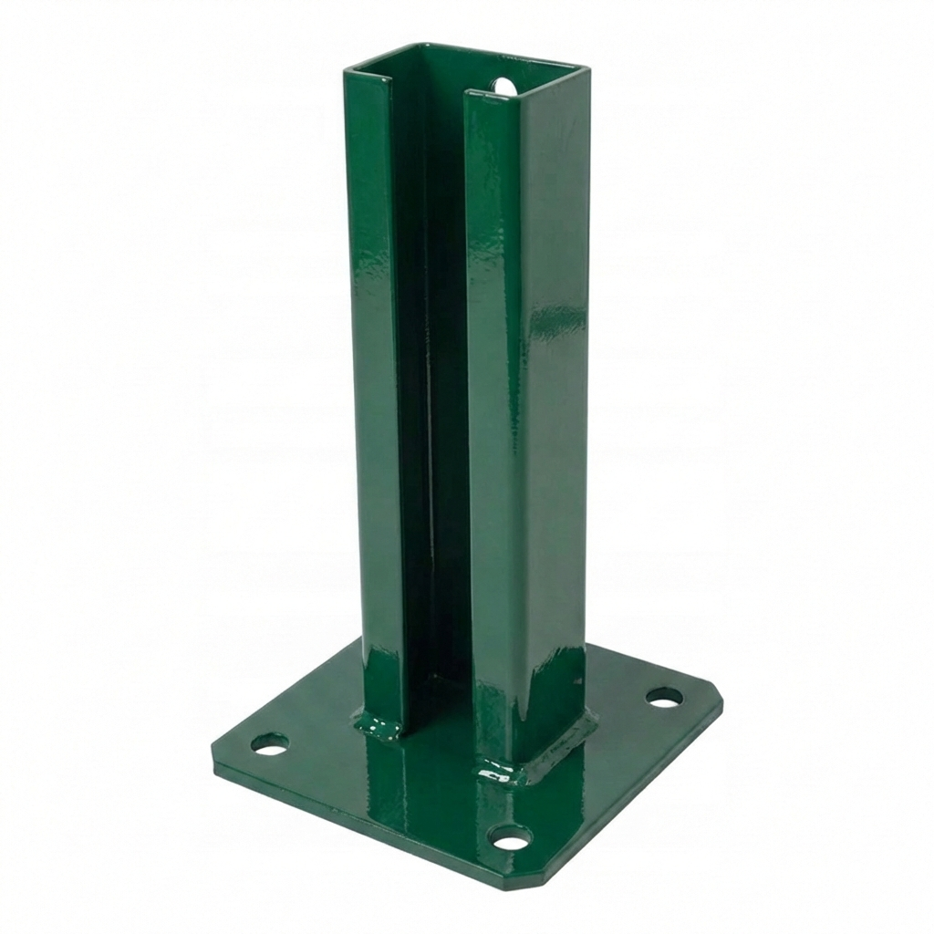 Patka plotového sloupku 60×40 mm je odolná ocelová konzole určená k montáži panelových sloupků na betonový podklad. Díky galvanickému zinkování a práškovému lakování v zelené barvě (RAL 6005) poskytuje produkt účinnou antikorozní ochranu a estetický vzhled — ideální pro venkovní použití.