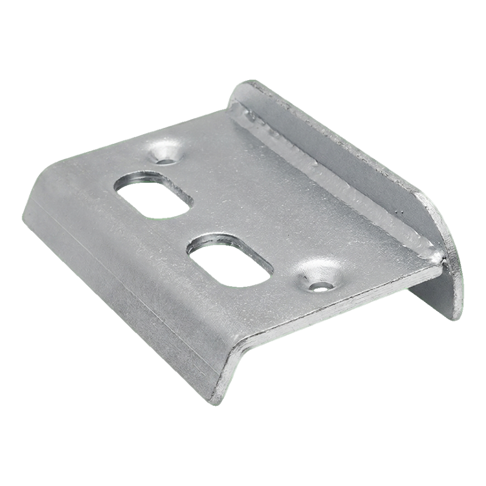 Zarážka je určena pro křídlové brány — montovaná na styku křídel plní funkci omezovače pohybu a bodu zajištění. Fazolové otvory umožňují regulaci polohy zástrčky, což usnadňuje přesné přizpůsobení různým typům bran. Pozinkovaný povrch zaručuje odolnost proti korozi, díky čemuž se prvek ideálně hodí pro venkovní montáž — v plotech pozemků, průmyslových a veřejně prospěšných objektech.