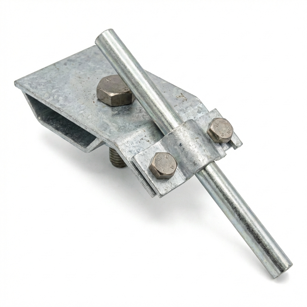 Okapový držák je spolehlivý prvek systému ochrany před bleskem, navržený pro stabilizaci hromosvodu v místě přechodu přes okapový žlab. Díky solidní konstrukci z elektrolyticky pozinkované oceli zajišťuje trvalé a pevné uchycení kulatého vodiče o průměru Ø8–10 mm.